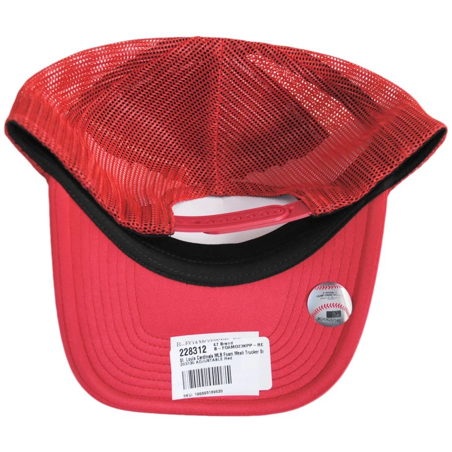 Featuring a 5-panel crown, the St. Louis Cardinals MLB Foam Mesh Trucker Snapback Baseball Cap is an extra comfy cap thanks to the foam finish on the front panel and bill. An embroidered logo adorns the foam panel while an embroidered ’47 Brand side hit is featured on a mesh side panel. A cord hat band, adjustable snapback, cotton twill sweatband and inseam taping complete this look.