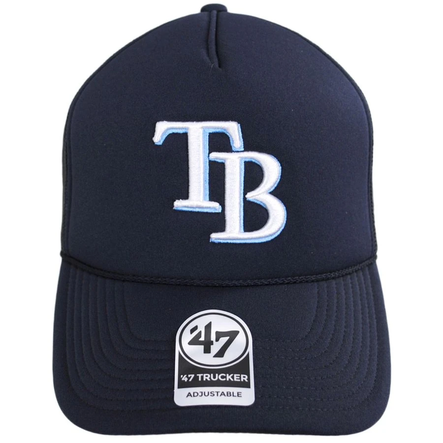 Featuring a 5-panel crown, the Tampa Bay Rays MLB Foam Mesh Trucker Snapback Baseball Cap is an extra comfy cap thanks to the foam finish on the front panel and bill. An embroidered logo adorns the foam panel while an embroidered ’47 Brand side hit is featured on a mesh side panel. A cord hat band, adjustable snapback, cotton twill sweatband and inseam taping complete this look.