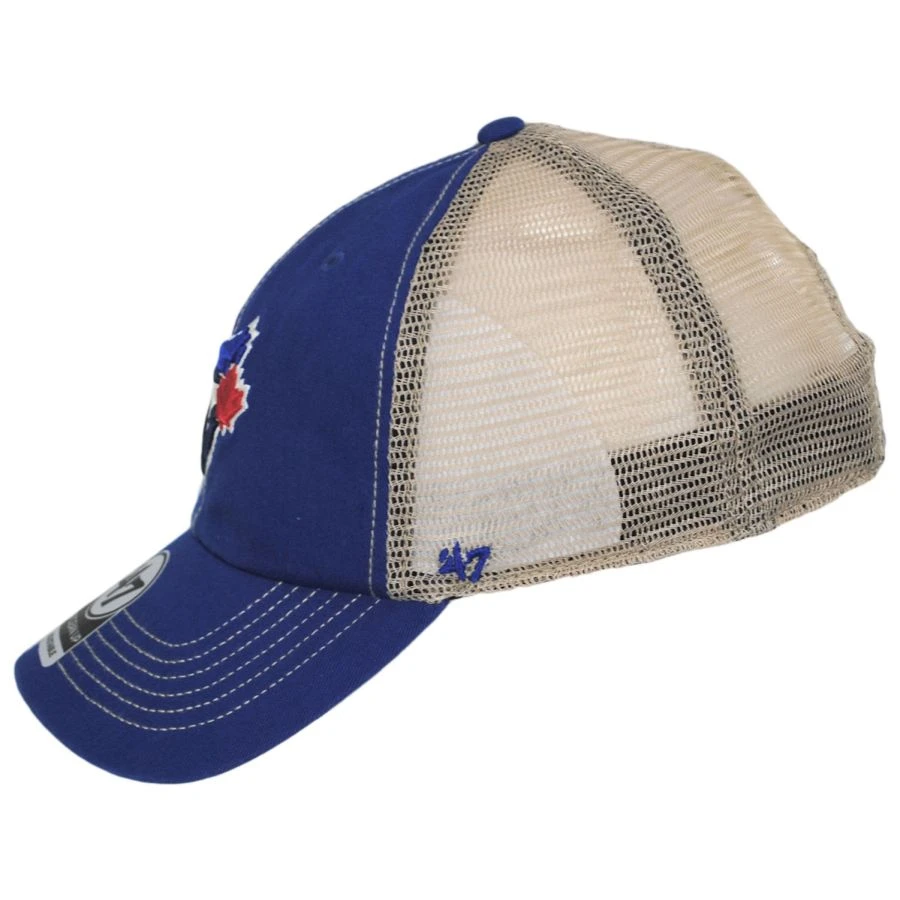 Featuring a soft classic 6-panel crown, 4 of which are mesh, the Toronto Blue Jays Trawler 47 Mesh Clean Up Snapback Baseball Cap is all about comfort and relaxation. The front 2 panels are made of 100% cotton with a garment-washed twill finish, sewn eyelets and are adorned with an embroidered logo at the front. An embroidered ’47 Brand side hit, adjustable snapback, cotton twill sweatband and inseam taping complete this easy-going baseball cap.