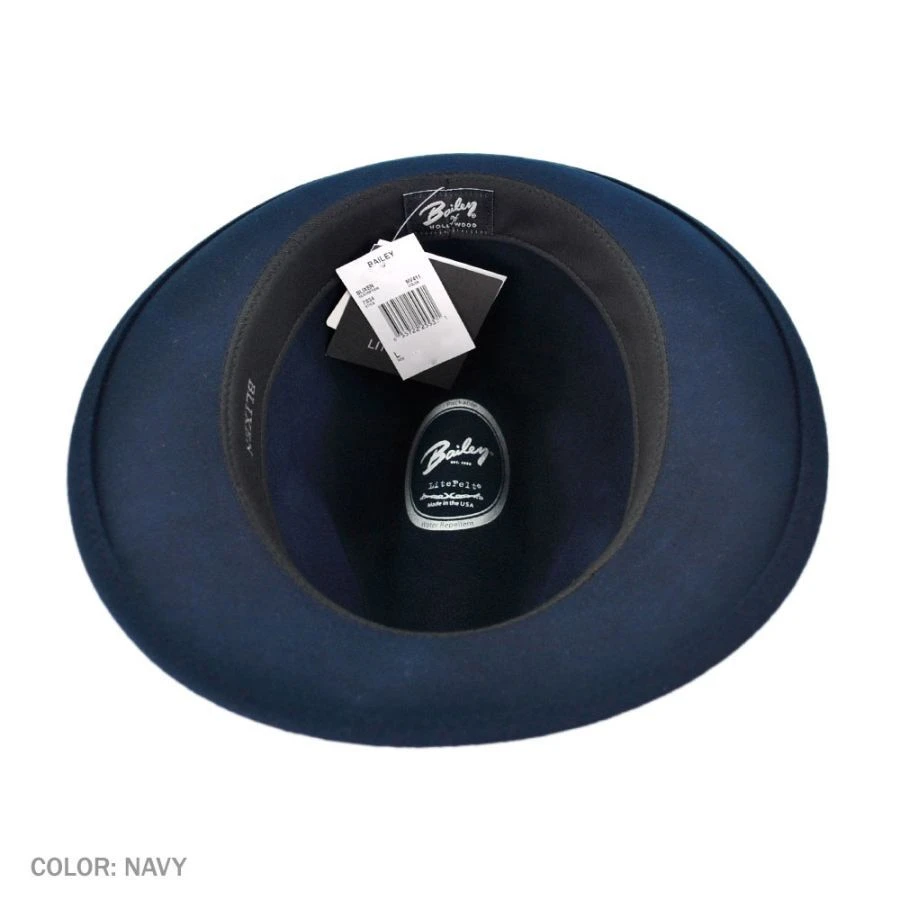 Another quality offering proudly crafted in the USA by experienced Bailey craftsmen! The Bailey 1922 Blixen Wool LiteFelt Fedora Hat is a classic felt fedora featuring a wide grosgrain hat band and sophisticated styling. Its exclusive LiteFelt® finish gives the hat its soft and packable nature in addition to adding water repellency. Good looks and functionality can coexist! Bailey’s Blixen Wool LiteFelt Fedora Hat has both in a classic fedora shape that’ll never go out of style!