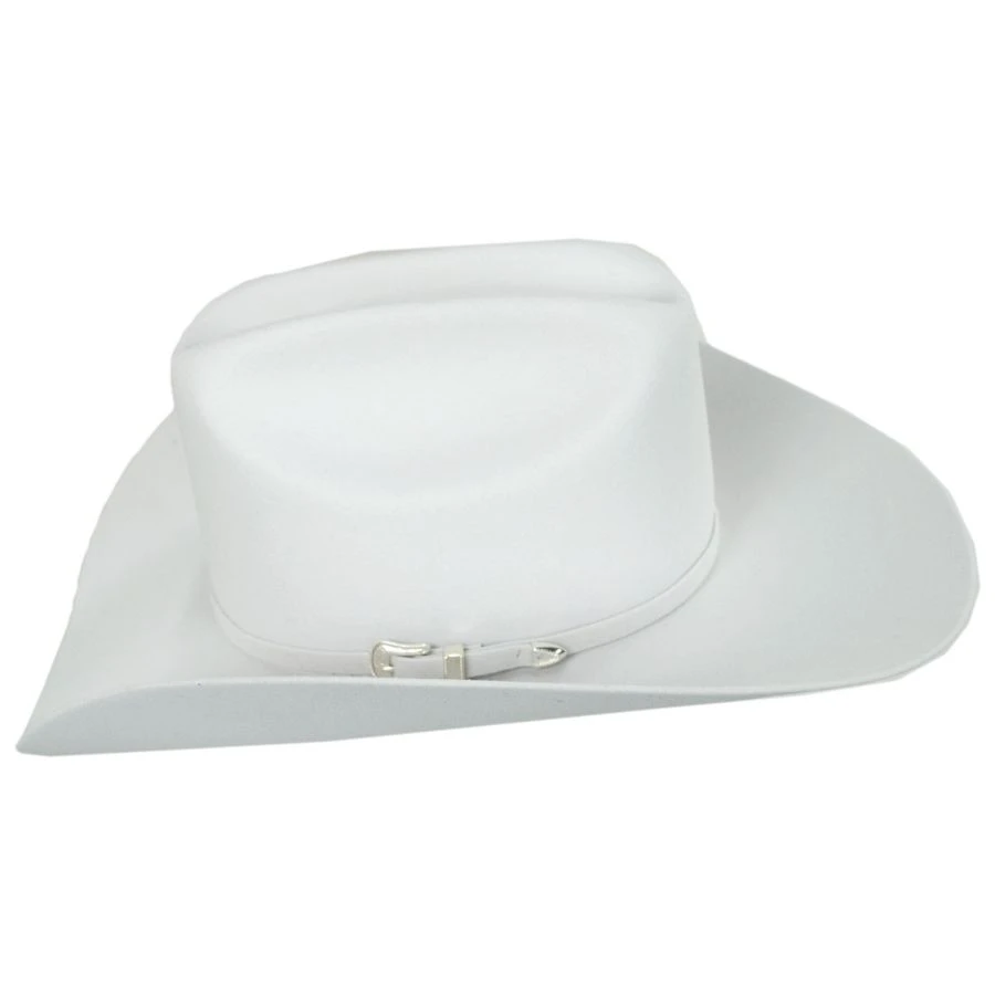 An excellent quality cattleman, the Lightning Wool and Angora Felt Cowboy Hat from Bailey is the classic cowboy hat. With its matching felt band and buckle, you too can be riding off into the sunset in the ultimate in American styling.