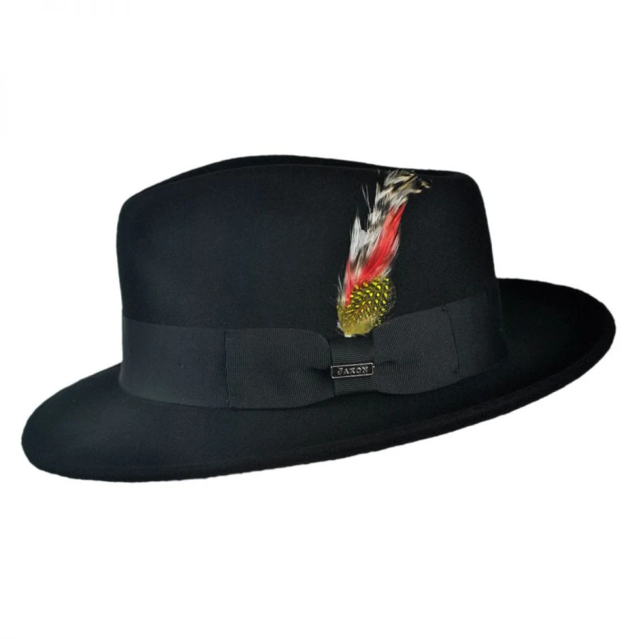 Timeless. Classic. The C-Crown Crushable Fedora Hat by Jaxon Hats encompasses both those words and more. Made of 100% wool felt, the C-Crown Crushable Fedora Hat touts a teardrop crown (aka “C-Crown”), a grosgrain ribbon hatband with side bow, feather and Jaxon hat pin as well as a classic snap brim. Its malleable wool felt construction gives the C-Crown Crushable Fedora Hat its crushable/packable ability in addition to its natural water resistance.