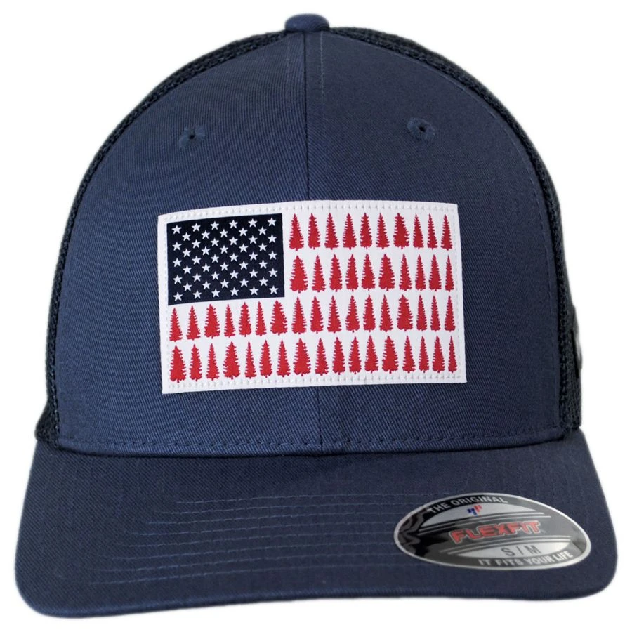 Pay your respects to the conifers of the USA with the Tree Flag Dark Blue Mesh Flexfit Fitted Baseball Cap by Columbia Sportswear. Flexfit’s iconic fit with a ventilated back is crafted from quality stretch mesh and makes for unsurpassed comfort even over time. In an attractive camouflage color scheme!