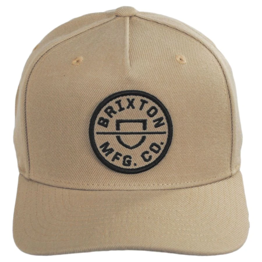 Keep it cool, simple and sharp with Brixton Hats’ new color option of this snapback, the Crest 5-Panel Snapback Baseball Cap. This semi-structured cap features five panels with a buckram support on the front. Breathable sewn eyelets and an unlined interior keep this hat breathable. To set you apart from the crowd, a Brixton patch adorns the front.