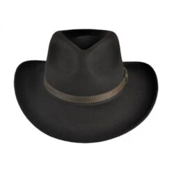 The Aussie-inspired Crushable Outback by Jaxon Hats offers the perfect compromise between a fedora and western hat. A teardrop crown is sleekly embellished with a smooth composite leather hat band while its generous brim curves at both the front and back. Made of soft 100% wool felt, the Jaxon Hats Crushable Outback is both crushable and naturally water repellent – perfect for anything the Outback or great American West may throw your way.