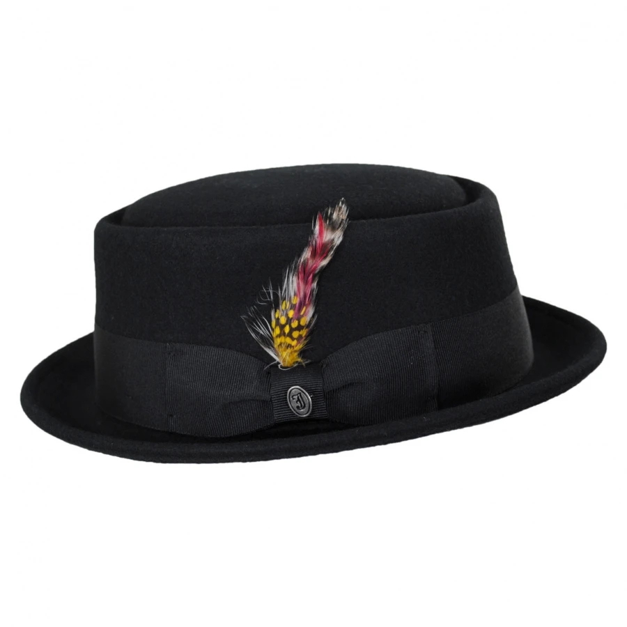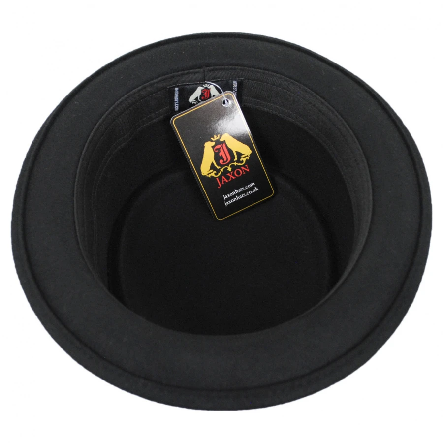 Available now by popular demand, the Jaxon Hats Crushable Wool Felt Pork Pie Hat is quickly becoming an endearing classic. Featuring a stout telescope crown and stingy brim, our Crushable Pork Pie Hat is made from a soft wool felt that not only feels great but is completely crushable/packable. Trimmed with a grosgrain ribbon hat band as well as a removable side feather and Jaxon hat pin, the Crushable Pork Pie Hat by Jaxon Hats is ideal for those seeking a distinctive-looking hat.