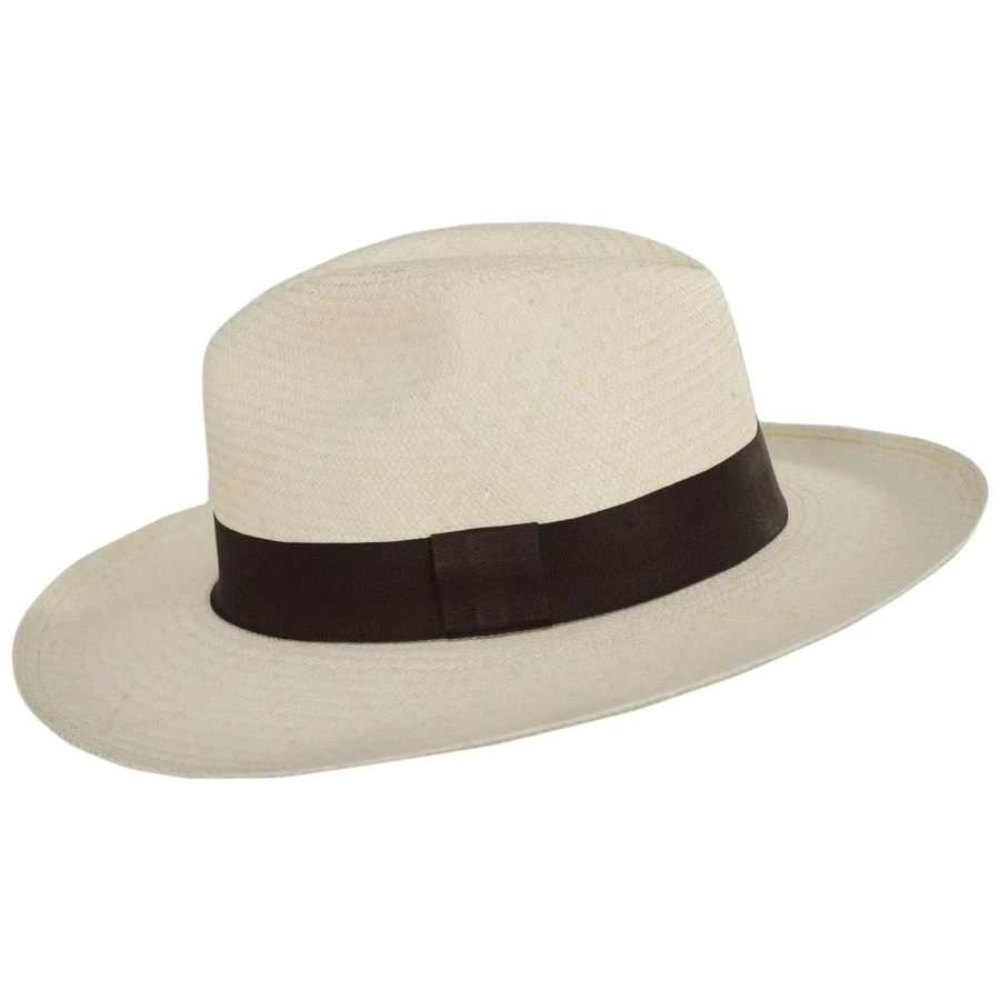 A beautiful hat made to last, the Grade 10 Panama Straw Clasico Center Pinch Fedora Hat by Hats Montecristi. This handwoven hat is a grade 10 which denotes a fine weave giving it a flexible, soft and supple feel. Features a grosgrain ribbon hat band, long oval crown and slightly upturned brim.