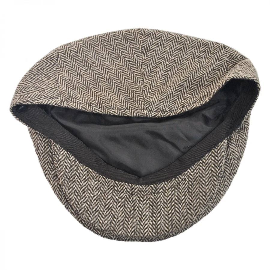 Featuring a classic herringbone pattern made of a lightweight wool blend, the Jaxon Hats Herringbone Ivy Cap is a dapper addition to any look. Finished with a satin lining, grosgrain ribbon sweatband and a Jaxon “J” side pin, this ivy cap is available in versatile black or brown herringbone. Add timeless style to your wardrobe with the Herringbone Ivy cap by Jaxon Hats!