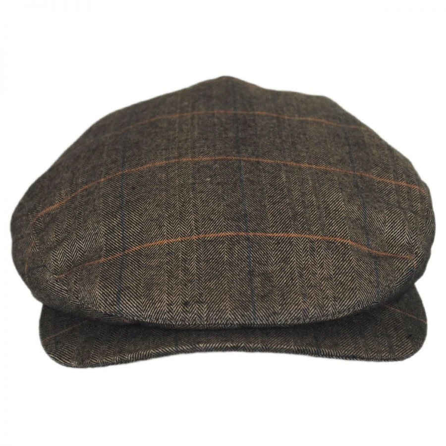 Featuring a sharp-looking plaid herringbone pattern in brown with orange and teal highlights, the Hoxton Herringbone Plaid Ivy Cap by Jaxon is the perfect fall and winter cap. Designed with a slightly extended square bill/visor with double snaps, the Hoxton has a wider profile and look. Accented with a small Jaxon “J” side pin, the Hoxton is finished with a classic grosgrain sweatband and quilted satin lining.