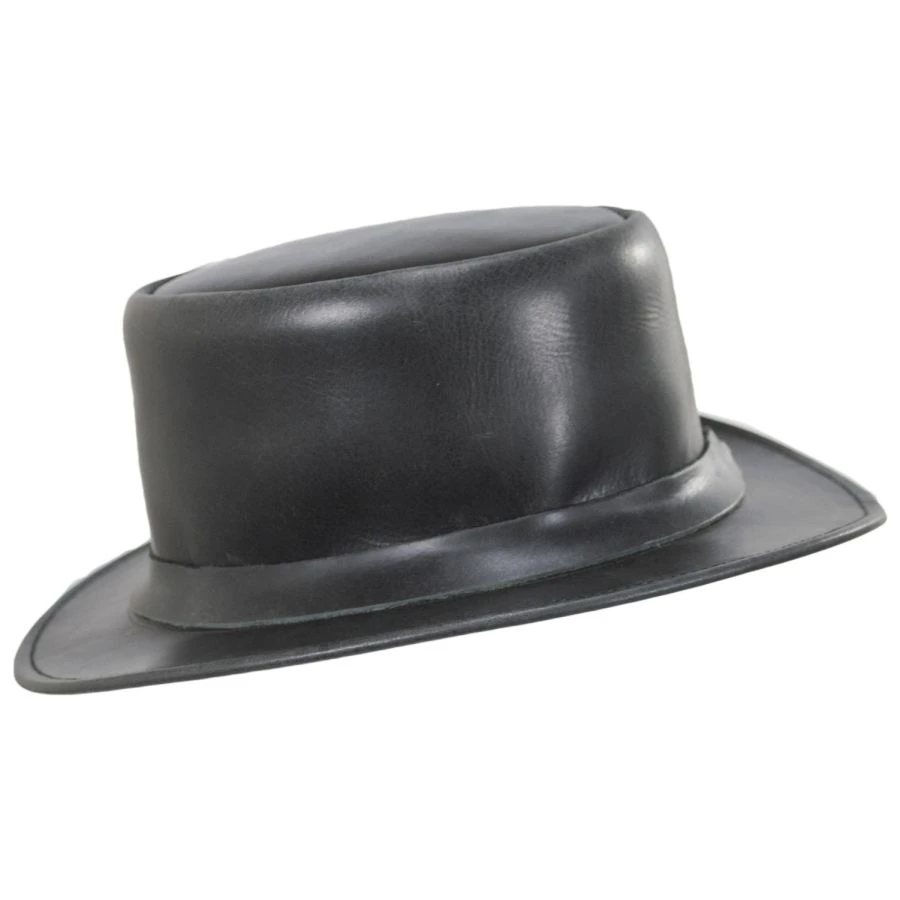 Jaxon Hats’ John Bull Leather Top Hat has a simple design that allows for the material and blocking to shine. Made of genuine leather that has been given a slight stressed, matte finish, this top hat has been given a flat top crown and a shapeable wired brim to allow for customization. The interior features a elasticized sweatband for comfort and is unlined.