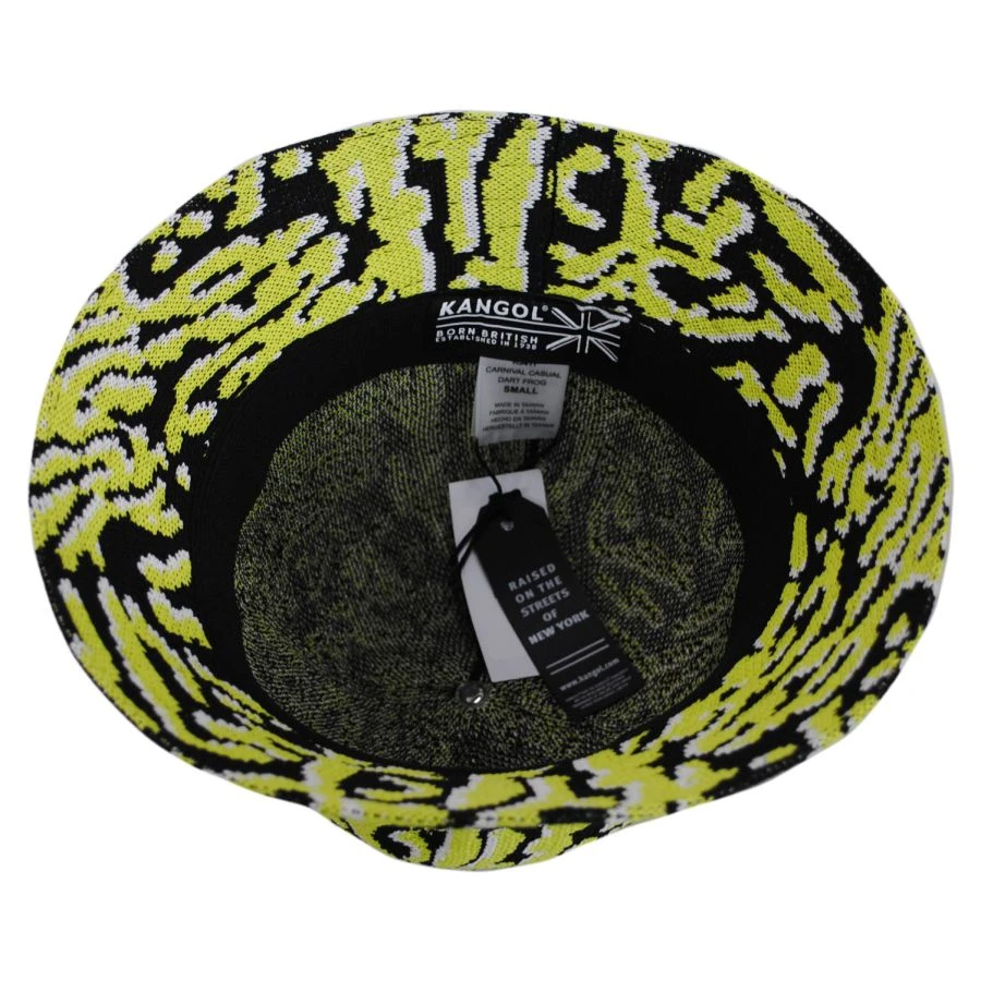 With the Carnival Casual Tropic Bucket Hat – Black/Green from Kangol, you can really go wild! This fun-loving hat features a classic bucket design with a handy down brim and a top button. The main attraction of this hat is the knit abstract pattern, which is so stylish and flashy! This hat is unlined with a comfortable knit sweatband.