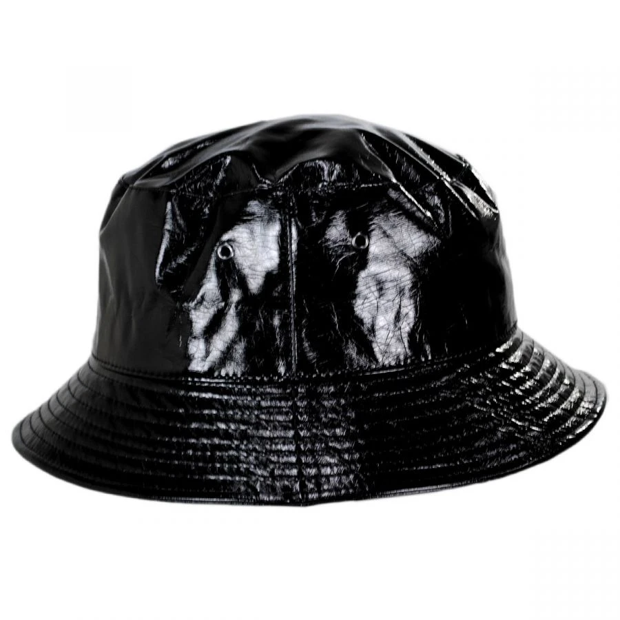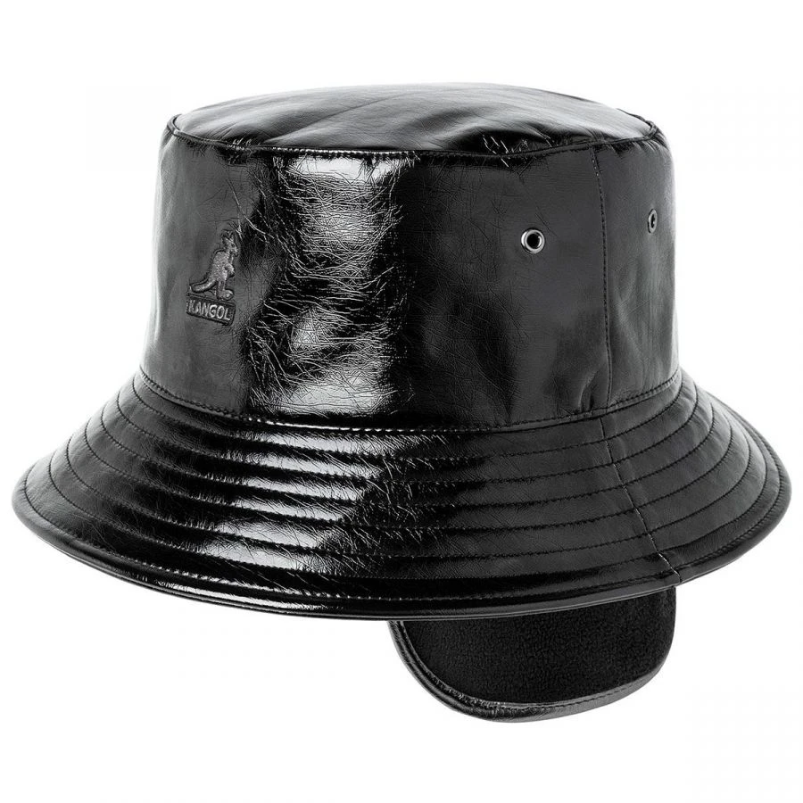 Kangol just might have brought us something back from a time traveling adventure with the Future Earflap Cotton Blend Bucket Hat! Featuring some innovative retractable earflaps that allow the bucket hat to transform into a winter appropriate hat. The Future bucket hat comes in a sleek faux patent crinkled leather finish.