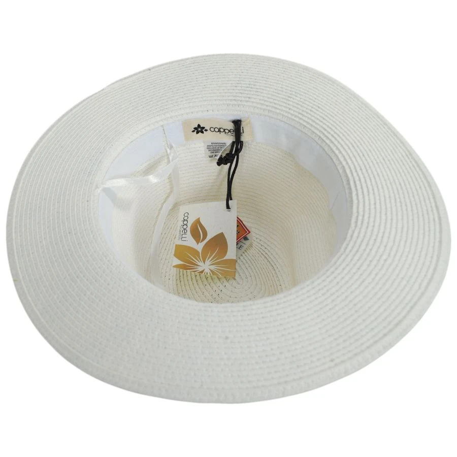 The Medodi Toyo Straw Fedora Hat from Cappelli Straworld is made of toyo straw that has been braided and shaped into a safari-style fedora. The 3 1/8″ brim has been given a tie-dye pattern which adds a burst of color. And the twisted toyo straw hat band adds even more color!