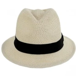 Soft and so easy to the wear, Scala’s Summerville Polybraid Fedora Hat is made of a durable polybraid with an extra soft finish. We just get enough of how cozy and light this stingy brim fedora is! Ventilated all through out the body, both crown and brim, this hat is also completely crushable/packable. A grosgrain ribbon hat band serves a simple yet classy accent. The Summerville features a smooth sweatband and is unlined for the ultimate cooling experience.