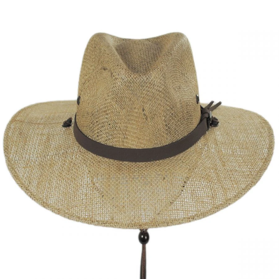A unique and ultra breathable hat, the Fazenda Coffee Bag Burlap Outback Hat by Stetson is made of 100% burlap. Reminiscent of an old fashioned coffee bag, the Fazenda is part of Stetson’s spring collection and features a semi firm body and is made in Mexico. The open weave of the burlap along with the unlined interior allows for optimum air flow, perfect for exceptionally hot days. Added accents include a leather hat band, metal eyelets and a leather chin strap.
